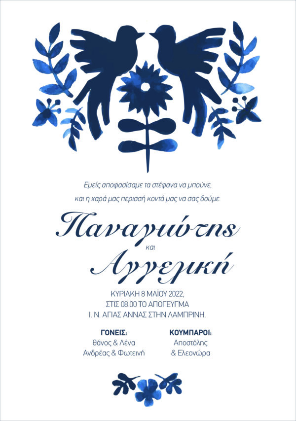 Δημιουργήστε ένα προσκλητήριο με τα στοιχεία σας και επιλέξτε ποσότητα 1 τεμαχίου, ώστε να το δημιουργήσουμε και να σας το αποστείλουμε πριν την τελική εκτύπωση με κόστος μόνο 9,95€.