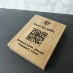 Εξατομικευμένος Κωδικός QR Χάραξη σε Ξύλινο Επιτραπέζιο Ταμπελάκι για Σάρωση συνδεσης σε Wi-Fi